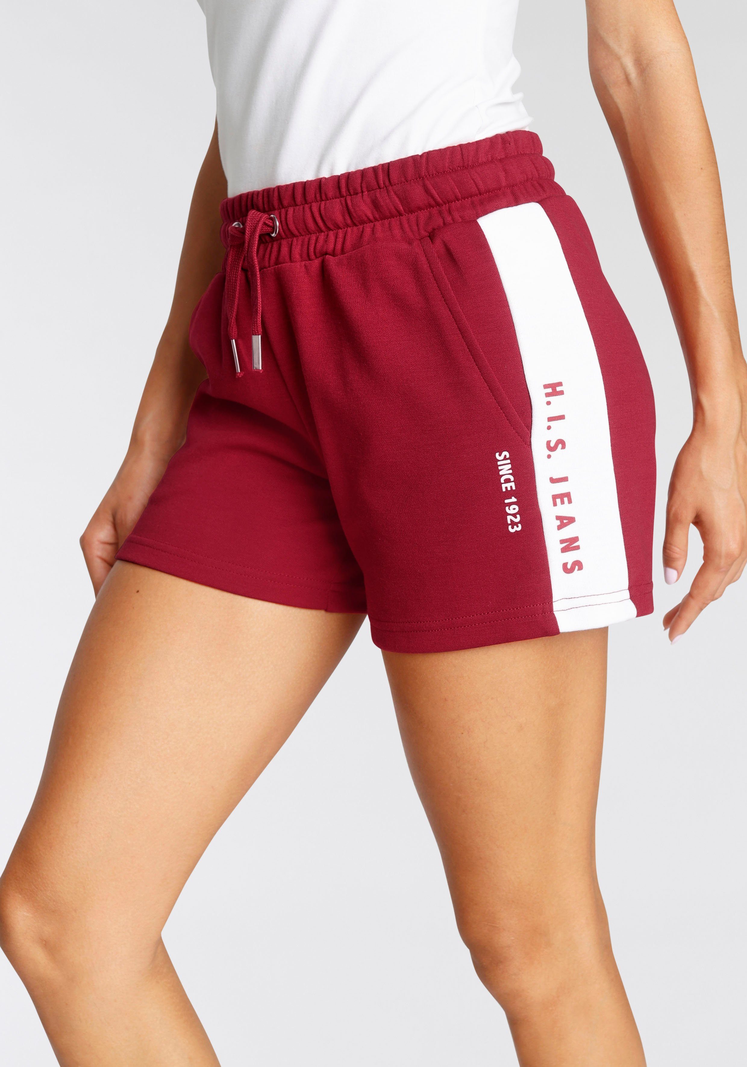 H.I.S Short met witte strepen opzij en logoprint