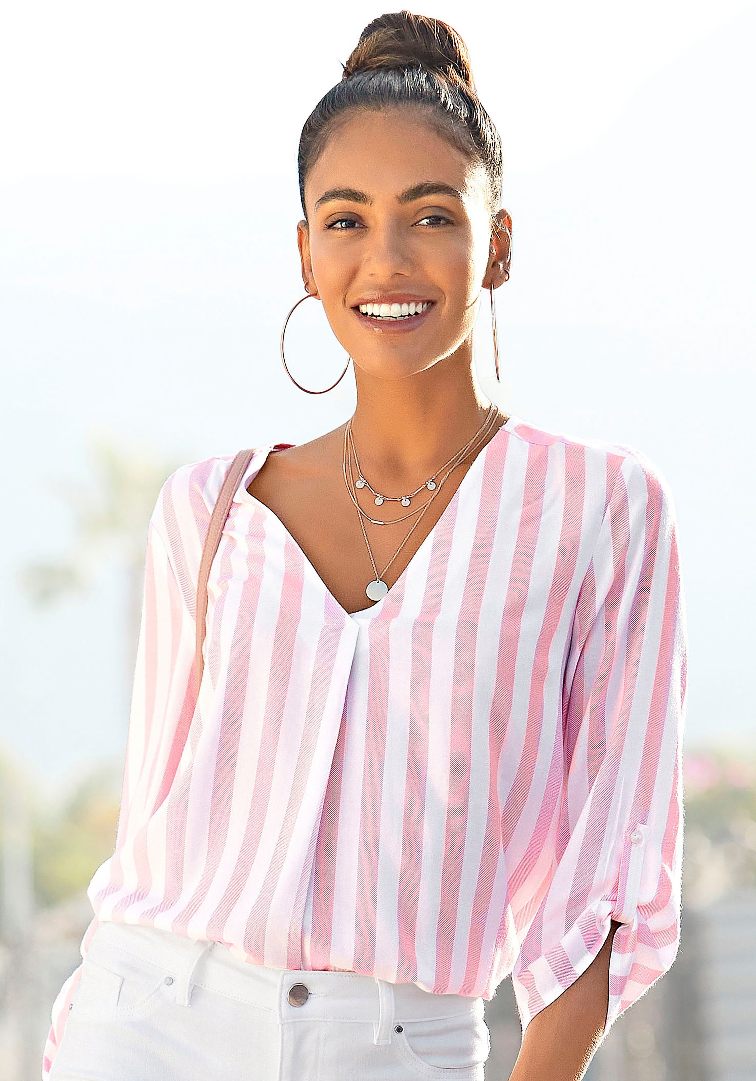 Lascana Blouse zonder sluiting met streep-print, lichte geweven stof, damesblouse