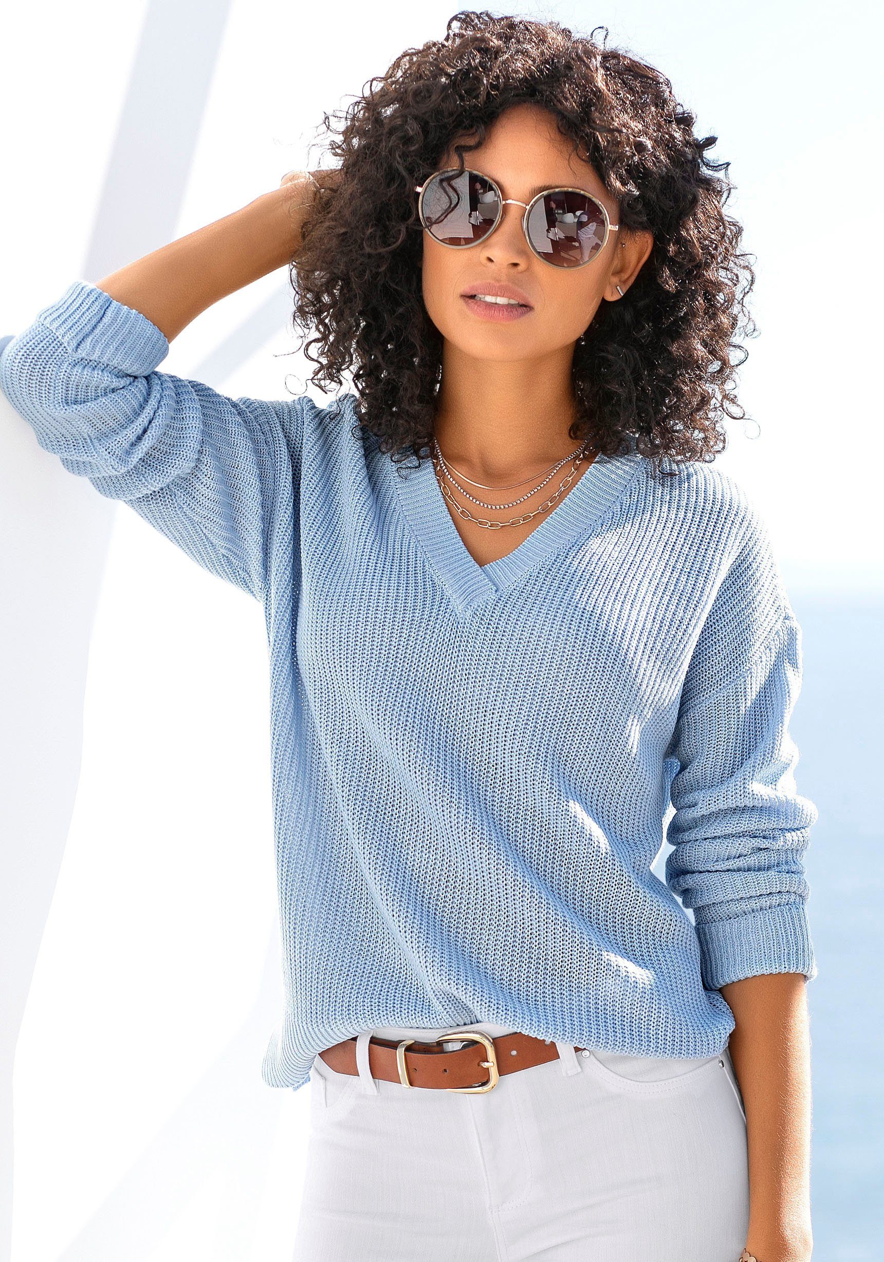 Lascana Trui met V-hals van zacht breiwerk, comfortabele damespullover