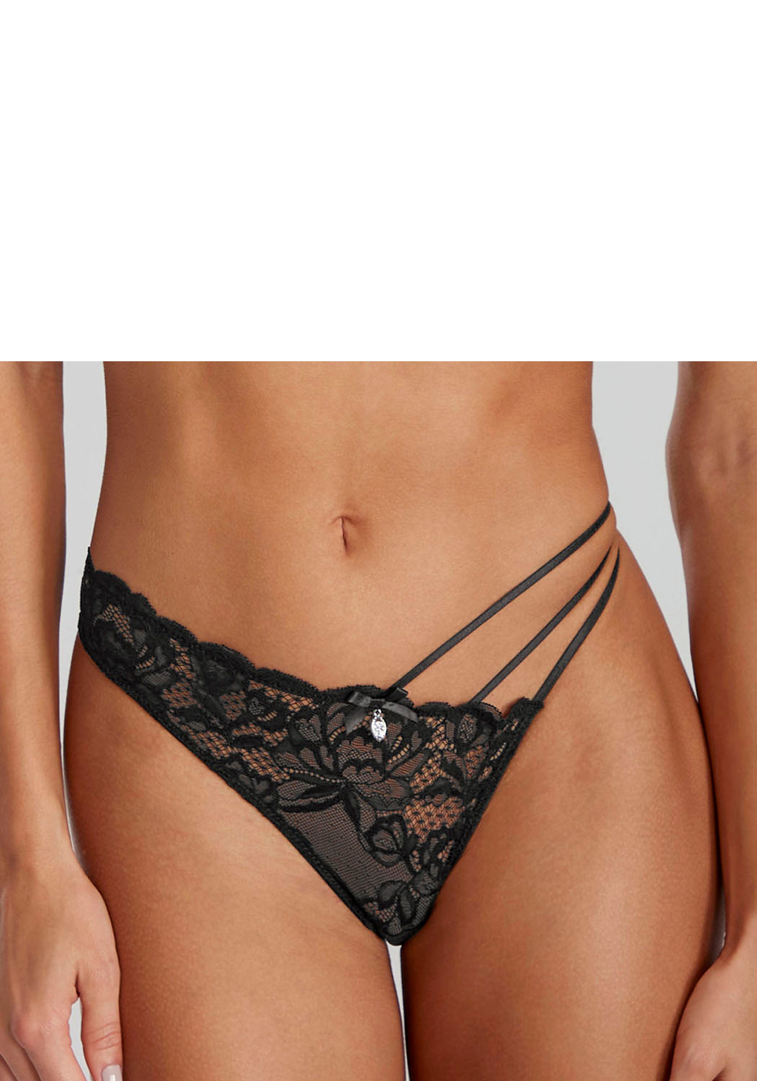 - Sexy string met speelse banddetails en edel glinsterend accessoire