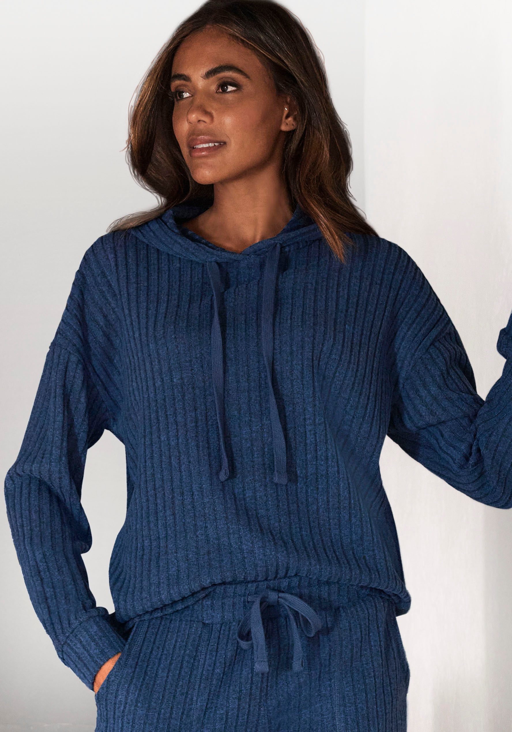 Lascana Hoodie Breipullover met capuchon en gemêleerd uiterlijk, loungewear