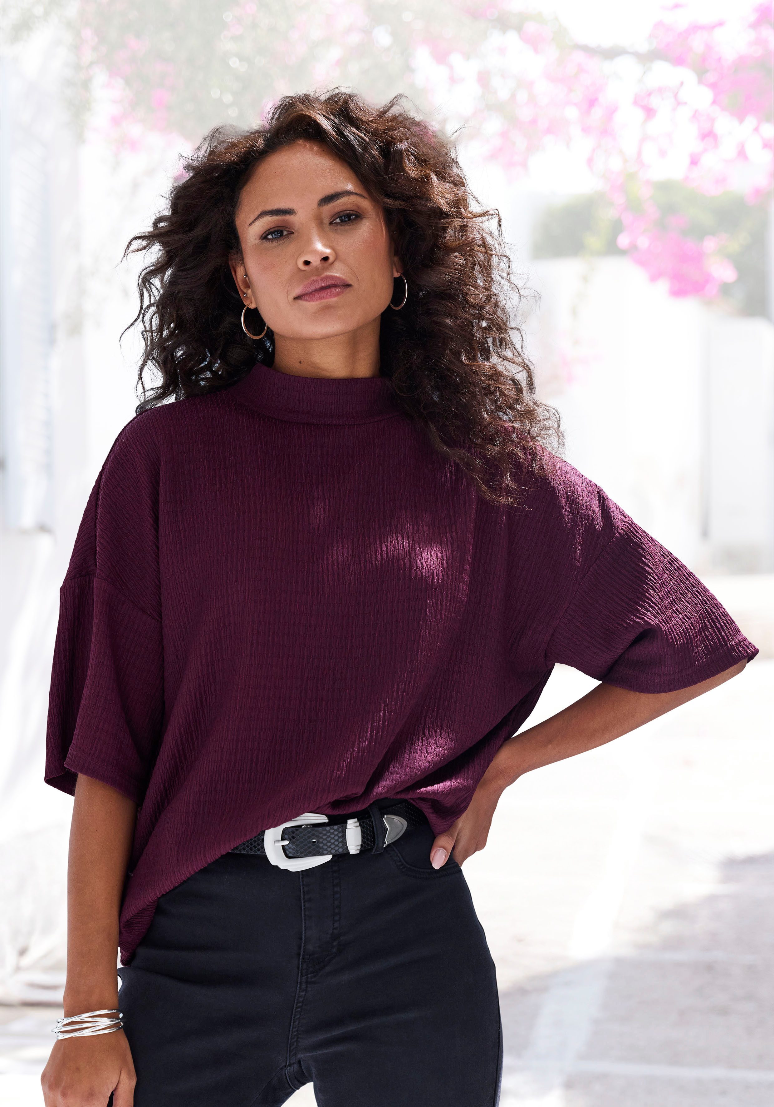 Lascana Shirt met korte mouwen Met opstaande kraag van kreukvrije crêpe-kwaliteit