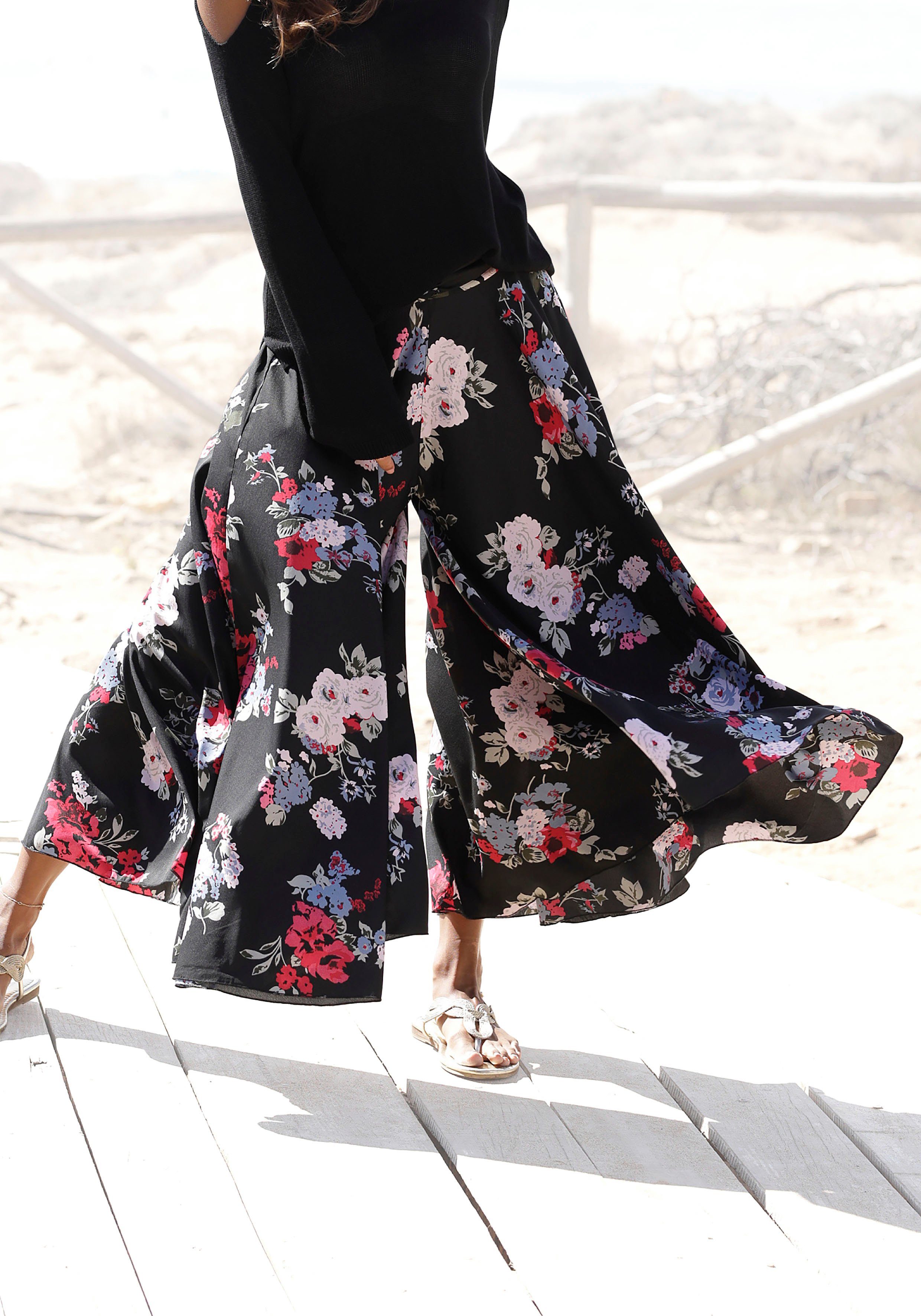 Lascana Broekrok met bloemenprint, culotte stijl, extra wijde pijpen
