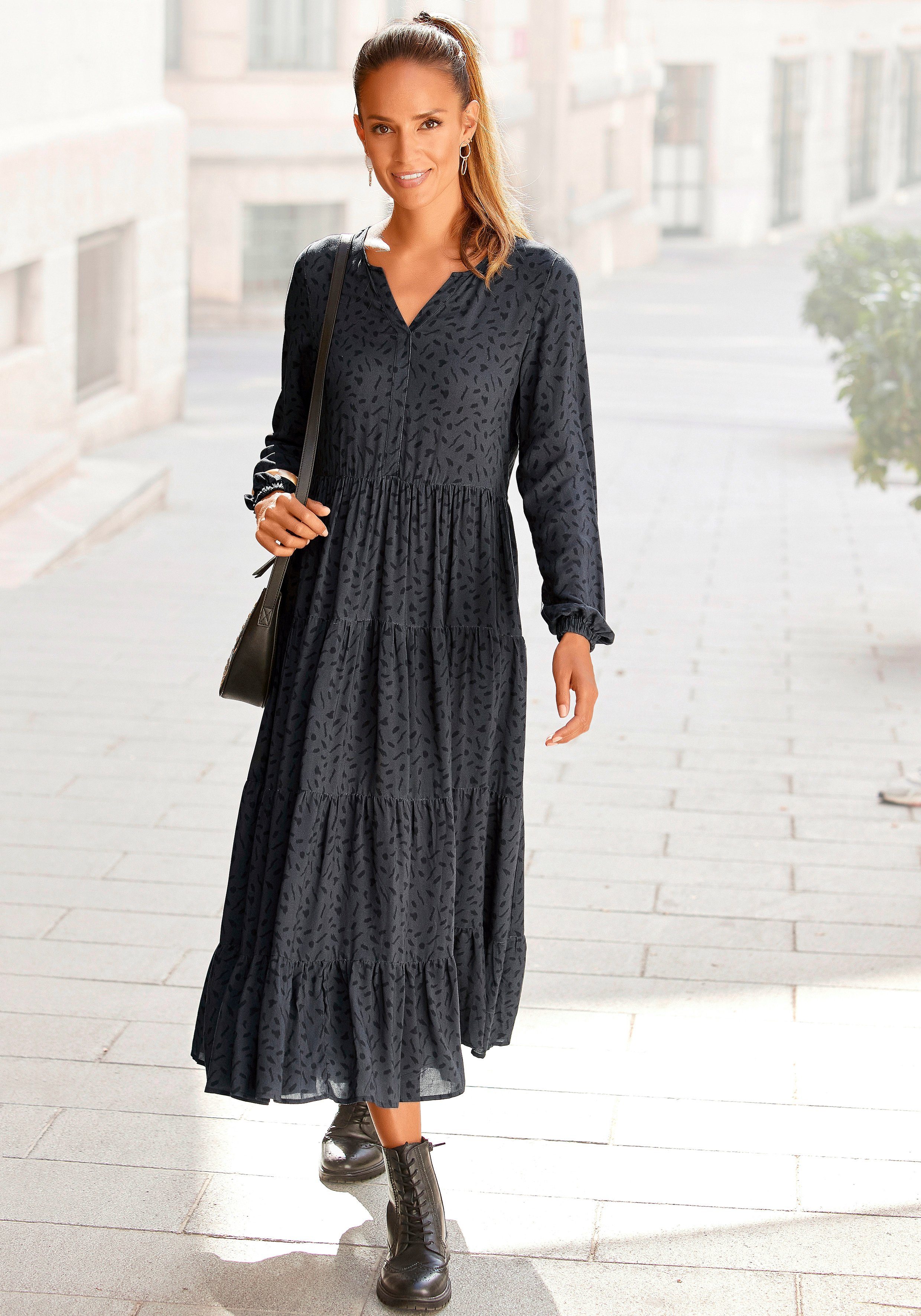 Lascana Maxi-jurk met all-over print en volants, lange mouwen, jurk met print, casual-chic